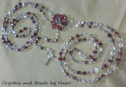 Ms. Susan Pascual, a cousin to one of the couple, was my direct contact for this project. She was helping out her cousin in scouting for suppliers, & fortunately, she found me! :) She sent me her cousin's peg for their wedding cord & it was a stringed wedding cord made of red & clear crystals with nickel tone beads/spacers. So I came up with my own version; and it's my very first stringed wedding cord :)