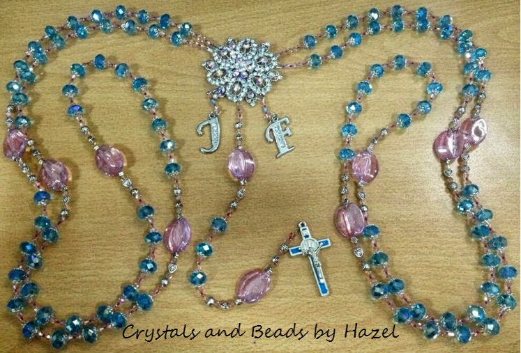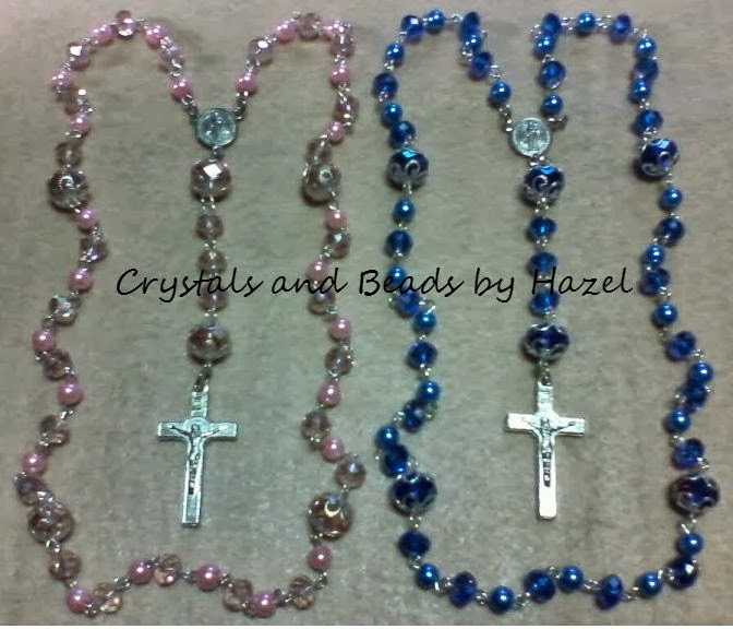 These couple rosaries were ordered by Ms. Camille Gonzales; she said these were for anniversary gifts. :) She wanted a combination of crystals & faux pearls in blue for the His rosary, and pink for the Hers rosary.
