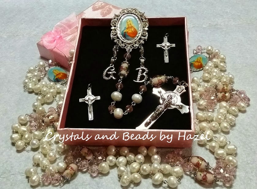 Here's another Crystals and Beads wedding cord for a US-based client. ☺ Ms. Sally Ylagan ordered this cord for her daughter's wedding. Such a sweet mother eh? ☺ After a few exchange of emails, she said the bride decided to go with a freshwater pearl wedding cord convertible into rosaries with blush pink or soft pink Our Father beads.